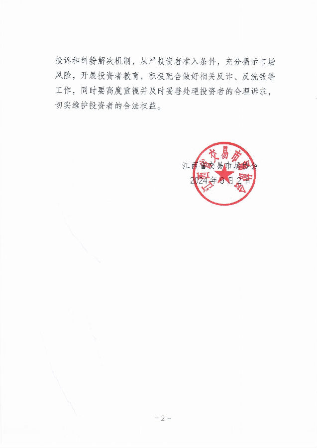 會議最后,劉祖國對大家的研討和建議表示肯定,并對下一階段支部黨建和協(xié)會工作,提出三點要求:一是要立足“防風(fēng)險”,加快提升安全運營的風(fēng)控能力。要始終將風(fēng)控管理放在首位,全面加快風(fēng)控運營管理系統(tǒng)建設(shè)完善工作,更好筑牢安全運營屏障、優(yōu)化客戶管理服務(wù)、提升輔助監(jiān)管效能。二是要聚焦“強監(jiān)管”,持續(xù)完善智能監(jiān)管平臺建設(shè)。要站位“贛金衛(wèi)士”平臺在全省范圍內(nèi)的整合協(xié)同與功能深化,科學(xué)構(gòu)建數(shù)據(jù)采集和風(fēng)險監(jiān)測的AI智能大模型,同時加快統(tǒng)一業(yè)務(wù)系統(tǒng)的推進部署工作,更強助力我省地方金融數(shù)智化綜合監(jiān)管體系建設(shè)。三是要著力“促發(fā)展”,積極引導(dǎo)相關(guān)行業(yè)轉(zhuǎn)型發(fā)展。協(xié)會和公司要深入研究政策導(dǎo)向和深耕行業(yè)市場,緊密結(jié)合我省區(qū)域資源優(yōu)勢并立足服務(wù)實體經(jīng)濟發(fā)展要求,積極引導(dǎo)幫助交易場行業(yè)加快業(yè)務(wù)轉(zhuǎn)型和模式創(chuàng)新,有效推動行業(yè)健康穩(wěn)定發(fā)展。