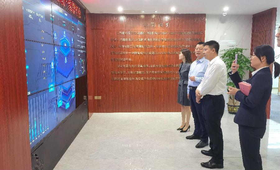郭朝暉一行首先觀摩了“贛金衛(wèi)士”監(jiān)管信息展示大屏,詳細(xì)了解公司相關(guān)輔助監(jiān)管平臺建設(shè)成果,并對公司在輔助監(jiān)管等方面的探索實踐工作及良好成效表示高度肯定。