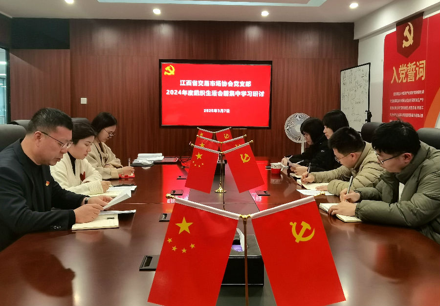 為深入學(xué)習(xí)貫徹習(xí)近平新時代中國特色社會主義思想,確保高質(zhì)量開好2024年度基層黨支部組織生活會。3月7日,江西省交易市場協(xié)會黨支部開展2024年度組織生活會會前集中學(xué)習(xí)研討。協(xié)會黨支部書記劉祖國同志主持會議,支部全體黨員、發(fā)展對象、入黨積極分子參加會議。