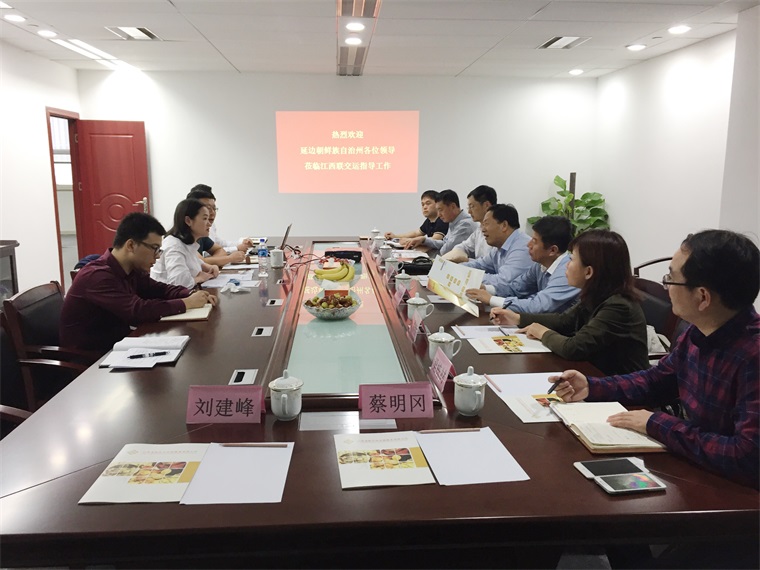10月19日下午,吉林省延邊朝鮮自治州人民政府(以下簡稱“延邊州政府”)副秘書長劉逢密、金融辦主任周洪濤等帶隊考察調(diào)研江西省聯(lián)交運金融服務(wù)有限公司(以下簡稱“江西聯(lián)交運”),江西省人民政府金融辦公室資本市場處(以下簡稱“江西省金融辦”)副處長李楠、江西聯(lián)交運總經(jīng)理劉祖國等陪同并參加座談。