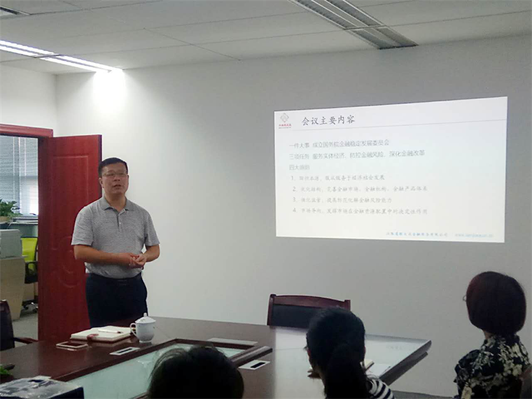 2017年7月20日,江西省聯(lián)交運金融服務(wù)有限公司(以下簡稱江西聯(lián)交運)總經(jīng)理劉祖國主持召開專題會議,認(rèn)真學(xué)習(xí)并傳達(dá)全國金融工作會議精神,并結(jié)合江西聯(lián)交運實際研究貫徹落實意見。