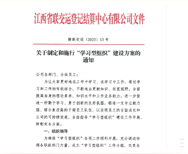 一直以來(lái),江西聯(lián)交運(yùn)秉承創(chuàng)新發(fā)展理念,高度重視員工和公司的共同成長(zhǎng)發(fā)展,始終堅(jiān)持在學(xué)中干、干中學(xué)的成長(zhǎng)育人理念,持續(xù)培養(yǎng)和鍛煉員工各項(xiàng)綜合能力提高,不斷增強(qiáng)隊(duì)伍創(chuàng)新創(chuàng)業(yè)干事真本領(lǐng)。為此,公司持續(xù)推進(jìn)學(xué)習(xí)型組織建設(shè)工作,開(kāi)展了多種形式、多層次的主題學(xué)習(xí)活動(dòng),在公司上下?tīng)I(yíng)造出良好的學(xué)習(xí)氛圍,學(xué)習(xí)型組織建設(shè)工作取得良好成效。