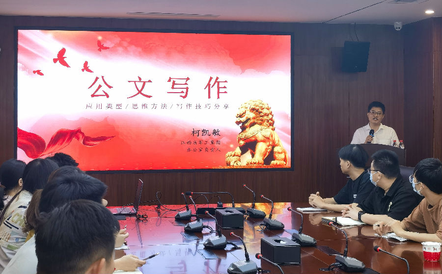 為進(jìn)一步提高公司全體員工對(duì)公文寫(xiě)作的認(rèn)識(shí),促進(jìn)公司辦文水平提升,6月13日,業(yè)務(wù)管理部作為月度輪值部門(mén)舉辦了6月學(xué)習(xí)培訓(xùn)會(huì)——公文寫(xiě)作。本次學(xué)習(xí)培訓(xùn)會(huì)特別邀請(qǐng)到江西省軍工控股集團(tuán)辦公室負(fù)責(zé)人柯凱敏現(xiàn)場(chǎng)授課,公司總經(jīng)理劉祖國(guó)出席并講話(huà)。