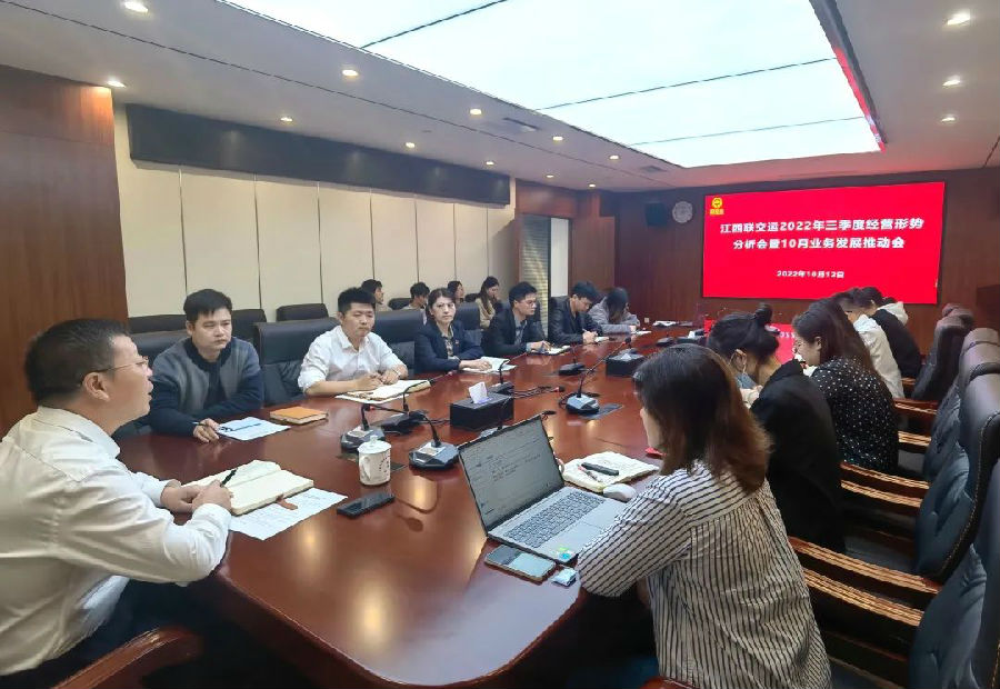 10月12日,江西聯(lián)交運召開2022年三季度經(jīng)營形勢分析會暨10月業(yè)務(wù)發(fā)展推動會。會議全面分析總結(jié)了公司前三季度經(jīng)營管理與業(yè)務(wù)發(fā)展情況,安排部署第四季度及下階段重點工作,公司總經(jīng)理劉祖國主持會議并講話。